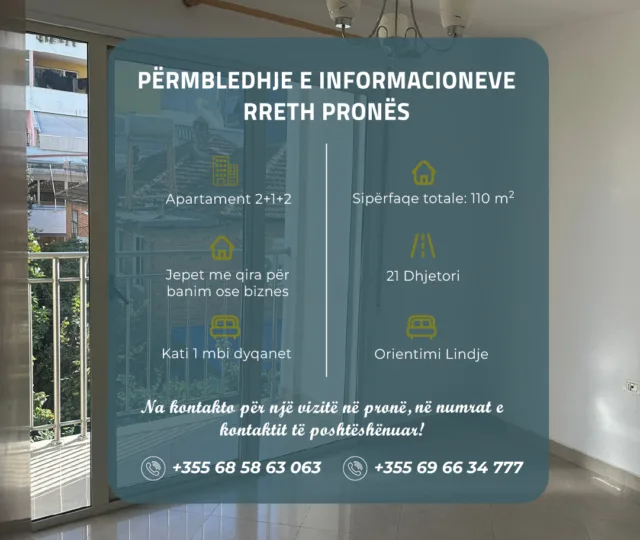 Apartamenti ndodhet në katin e parë mbi dyqanet.