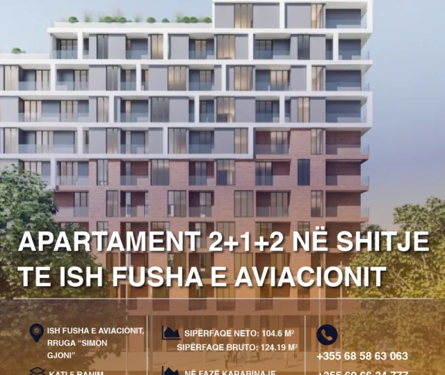 Shitet apartament 2+1+2 tek Ish Fusha e Aviacionit, rruga “Simon Gjoni”, Tiranë.