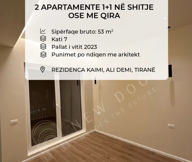 2 Apartamente 1+1 në shitje ose me qira, te Rezidenca Kaimi, Ali Demi, Tiranë.