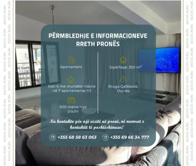 Apartament në shitje, me mundësi ndarje në 7 apartamente 1+1, në rrugën “Qafëbotë”, Durrës.