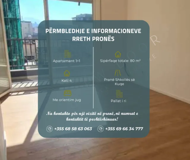 Apartamenti ka sipërfaqe totale 80 metër katror.
