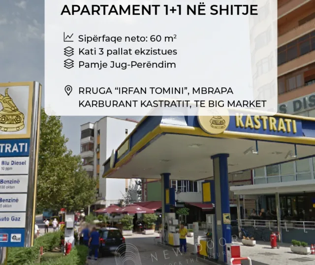Shitet apartament 1+1 në rrugën “Irfan Tomini”, mbrapa Karburant Kastratit te Big Market, Tiranë.