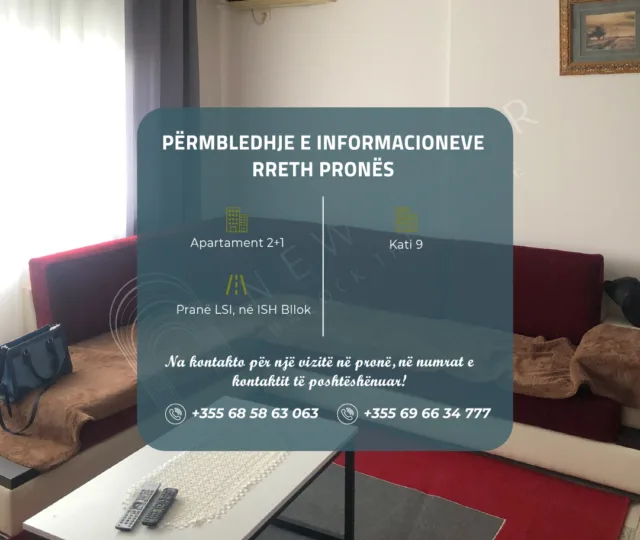 Apartament 2+1 me qira, pranë LSI në Ish Bllok, Tiranë.
