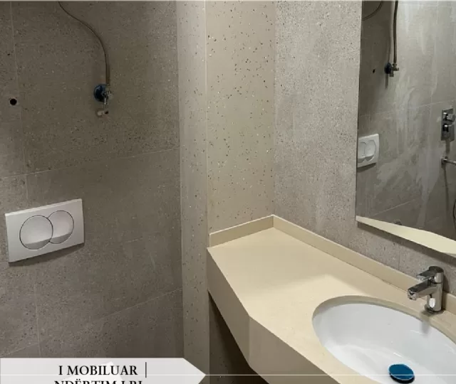 Apartamenti është i organizuar nga 2 dhoma gjumi, sallon ndenje, kuzhinë, 2 tualete.