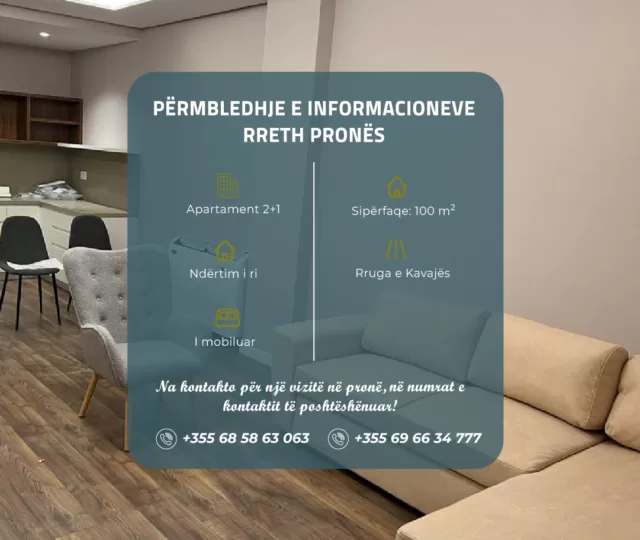 Apartament 2+1 me qira, në rrugën e Kavajës, Tiranë.