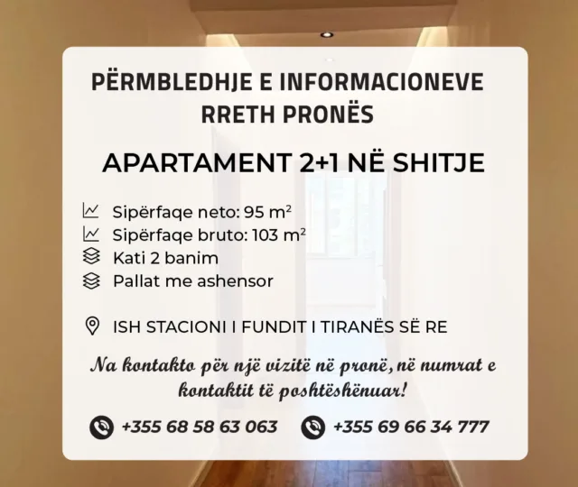 📍 Shitet apartament 2+1 te ish Stacioni i fundit i Tiranës së Re, Tiranë.