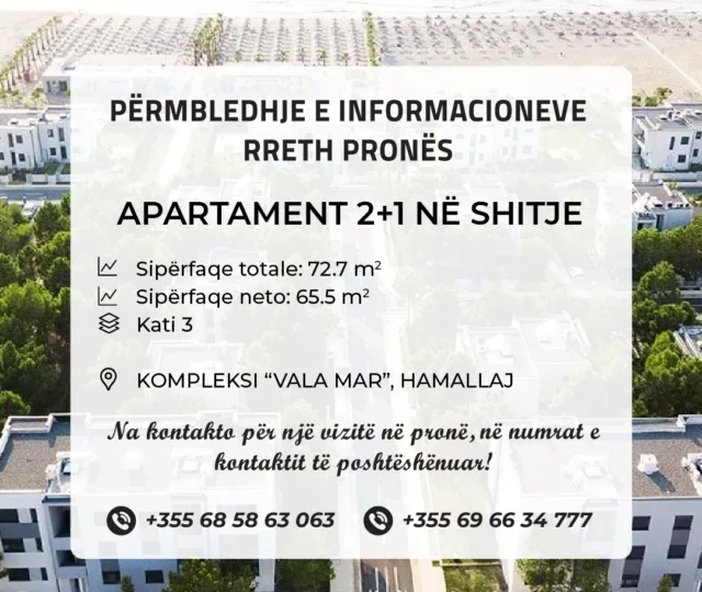 Shitet apartament 2+1 te Kompleksi Vala Mar, Hamallaj.