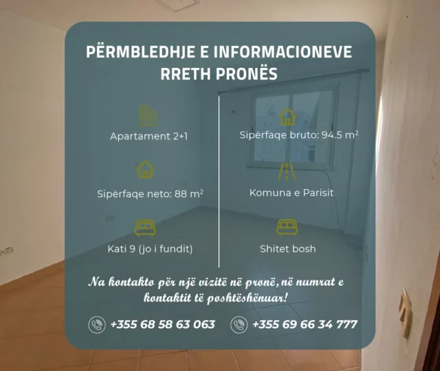 Sipërfaqe bruto 94.5 metër katror dhe sipërfaqe neto 88 metër katror.