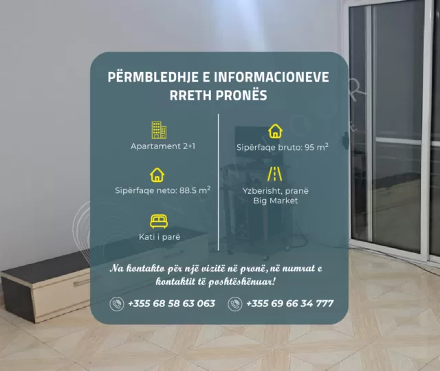 Apartament 2+1 në shitje, pranë Big Market në Yzberisht, Tiranë.