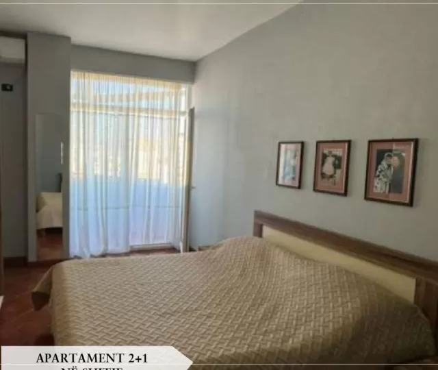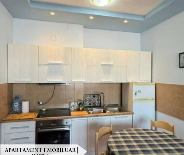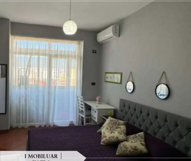 Apartamenti ndodhet në katin e tetë të një pallati dhe është totalisht i mobiluar.