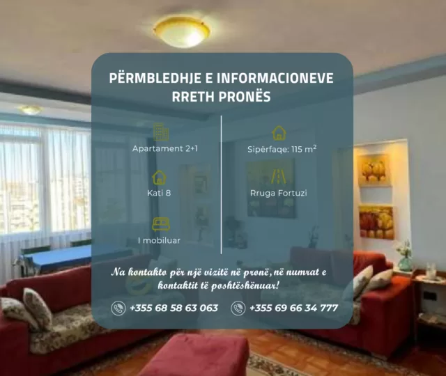 Apartament 2+1 në shitje, në rrugën Fortuzi, Tiranë.