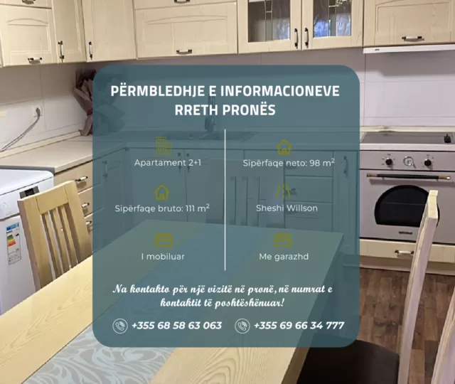 Apartament 2+1 ne shitje – Sheshi Willson