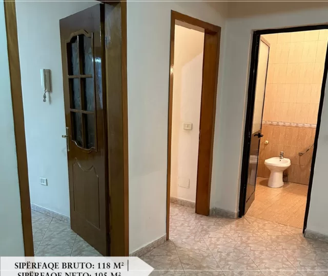 Apartamenti ka sipërfaqe bruto 118 metër katror dhe sipërfaqe neto 105 metër katror.