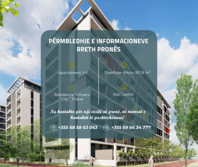 Apartament 2+1 në shitje, në rezidencën “Univers City”, Tiranë.