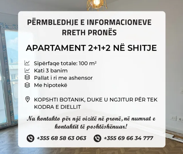 📍 Shitet apartament 2+1+2 tek Kopshti Botanik, duke u ngjitur për tek Kodra e Diellit, Tiranë.