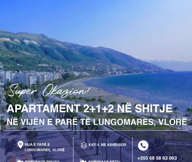 Shitet apartament 2+1+2 në vijën e parë të Lungomares, Vlorë