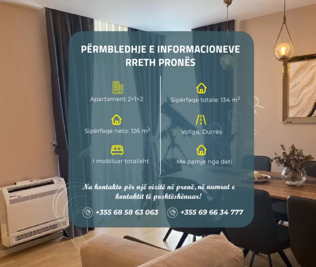 Apartament 2+1+2 në shitje, në Vollga, Durrës.
