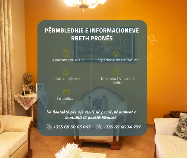 Apartament 4+1+2 në shitje, te blloku i Vilave në Selitë, Tiranë.