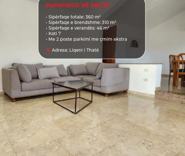 – Papafingoja është e organizuar në: ambient ndenje, kuzhinë, dhomë oxhaku, 3 dhoma gjumi, 1 lavanteri, 2 tualete.