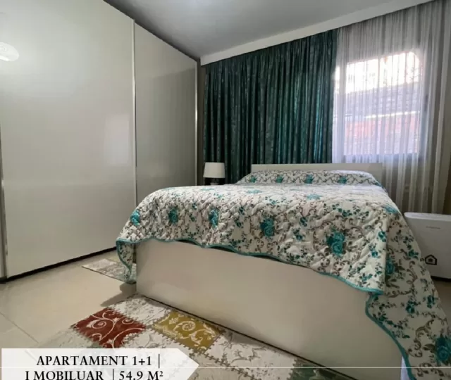 Apartamenti është totalisht i mobiluar, i organizuar në një dhomë, një kuzhinë dhe një tualet.