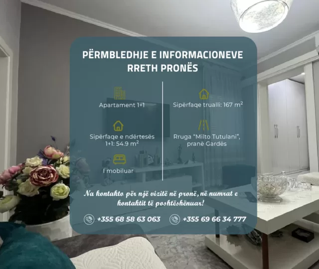 Prona private ka sipërfaqe trualli 167 metër katror dhe sipërfaqja e ndërtesës 1+1 me sipërfaqe 54.9 metër katror.