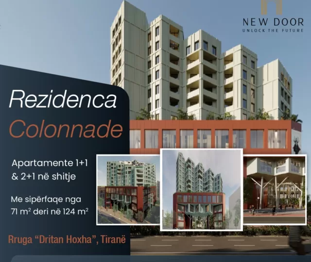 Apartamente 1+1 & 2+1 në shitje, në rezidencën Colonnade, në rrugën “Dritan Hoxha”, Tiranë.