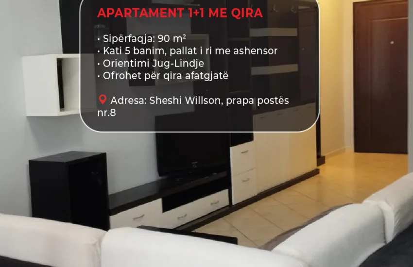 Qira €700 Apartamente Apartament 1+1 me qira – Sheshi willson prapa postes nr.8 New Door 1 vit më parë