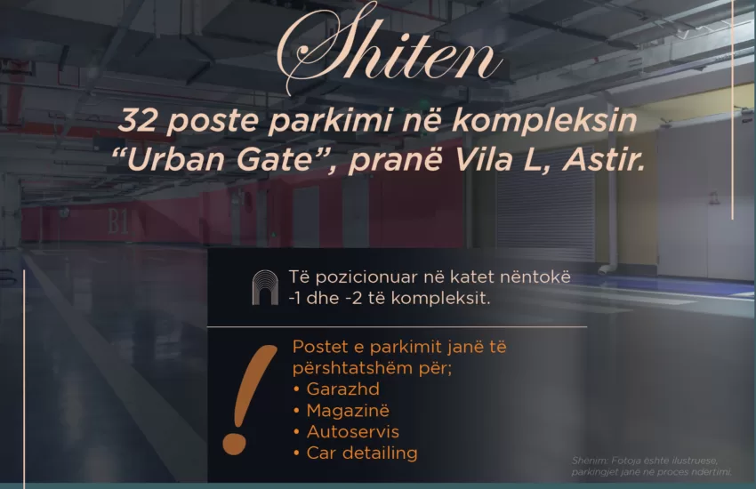 Shitje Ambient Biznesi Shiten 32 poste parkimi – Kompleksi Urban Gate, prane Viles L Astir New Door 2 vjet më parë