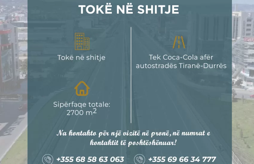 Shitje €125.000 Siperfaqe Toke Toke ne shitje 2700 m2 – Tek Coca-Cola afer autostrades New Door 2 vjet më parë