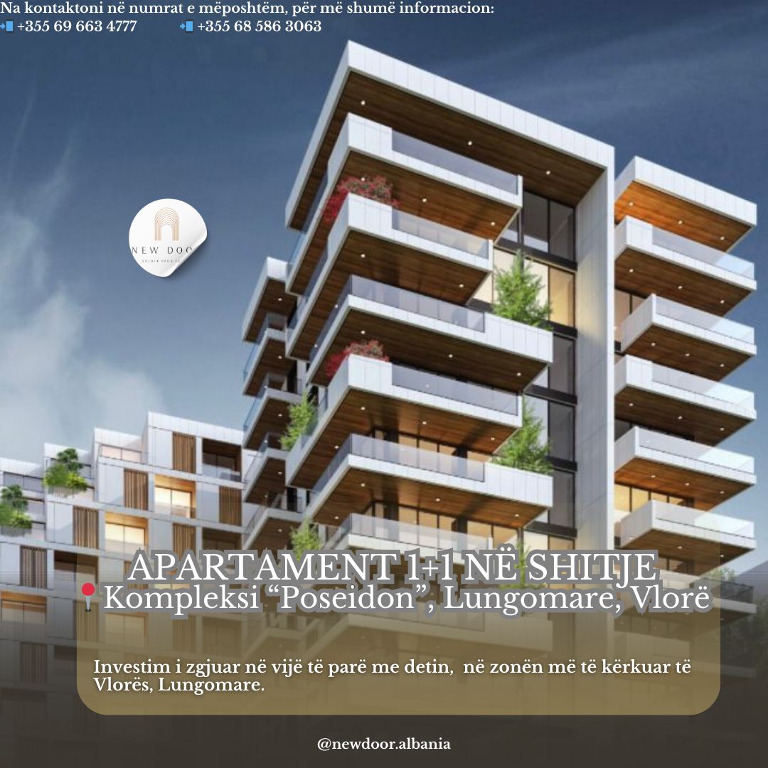🔑 Shitet Apartament 1+1 nĂ« Kompleksin “Poseidon”, nĂ« Lungomare, VlorĂ«.