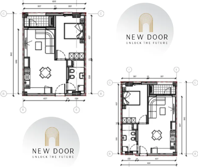 • Sipërfaqet respektive të apartamenteve janë 60.1m2 dhe 61.3 m2