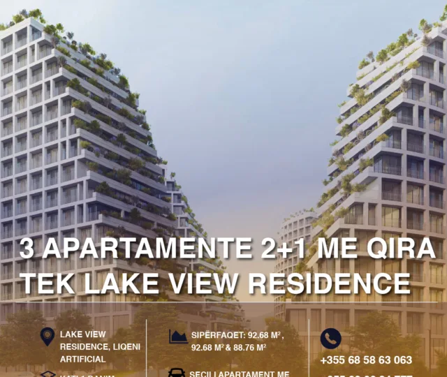 Jepen me qira 3 apartamente 2+1, tek Lake View Residence, Liqeni Artificial, Tiranë.