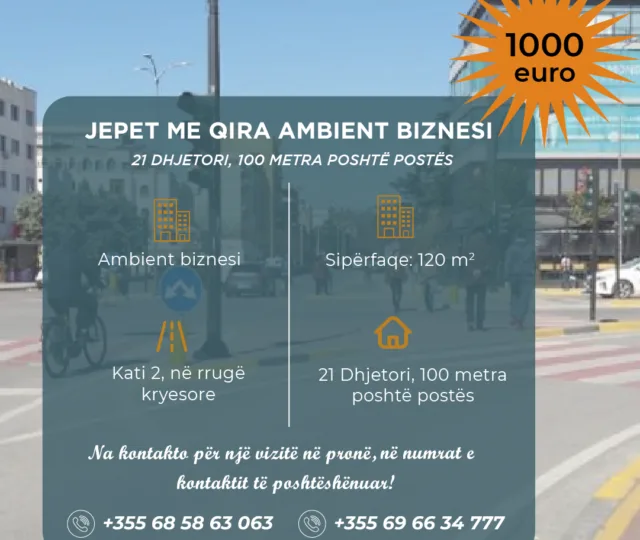 Ambient biznesi me qira, te 21 Dhjetori, 100 metra poshtë postës, Tiranë.