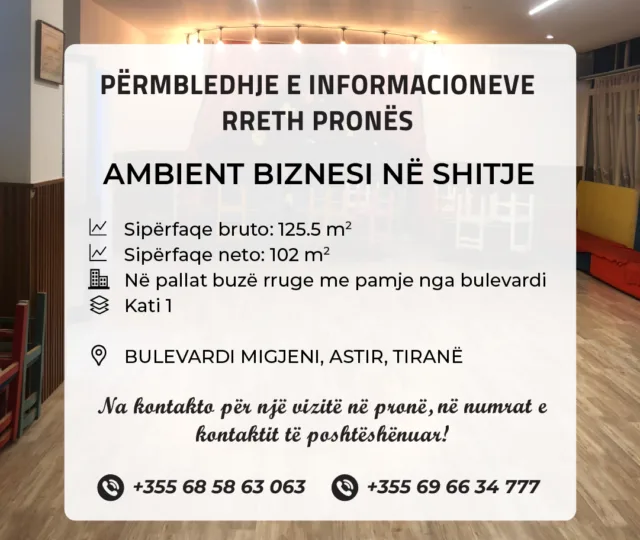Shitet ambient biznesi te Bulevardi Migjeni, Astir, Tiranë.