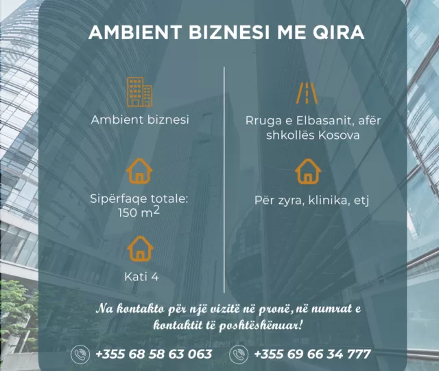 Ambienti është me sipërfaqe totale 150 metër katror dhe është i përshtatshëm për zyra, klinika etj.