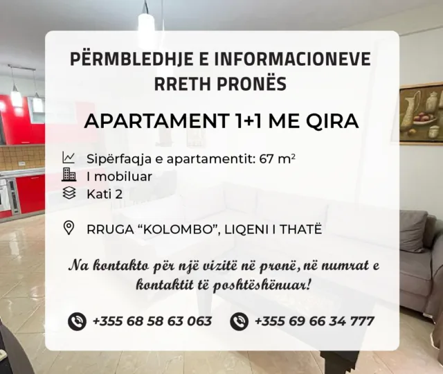 Jepet me qira apartament 1+1 në rrugën “Kolombo”, Liqeni i Thatë, Tiranë.