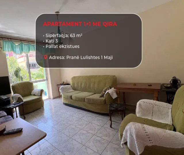 📍 Jepet me qira apartament 1+1 pranë Lulishtes 1 Maji, Tiranë.
