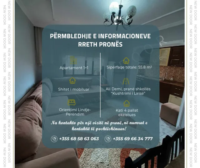 Apartament 1+1 në shitje, në Ali Dem, pranë shkollës “Kushtrimi i Lirisë”, Tiranë.