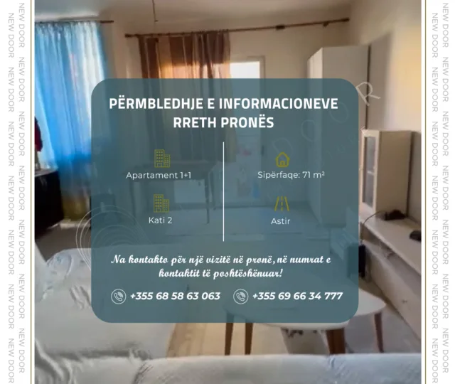 Apartament 1+1 në shitje, në Astir, Tiranë.