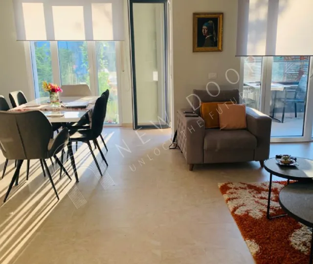 Apartamenti ka sipërfaqe totale 76.5 m² dhe oborr me sipërfaqe 140 m².
