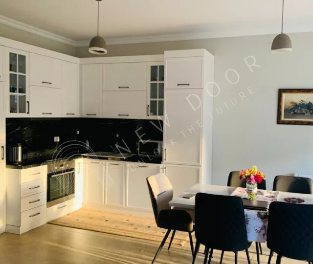 Apartamenti është i mobiluar në mënyrë bashkëkohore.