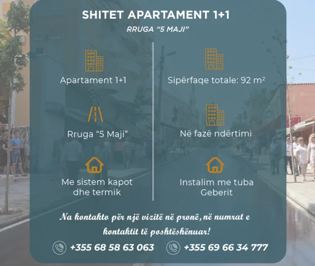 Apartament 1+1 në shitje, në rrugën “5 Maji”, Tiranë.