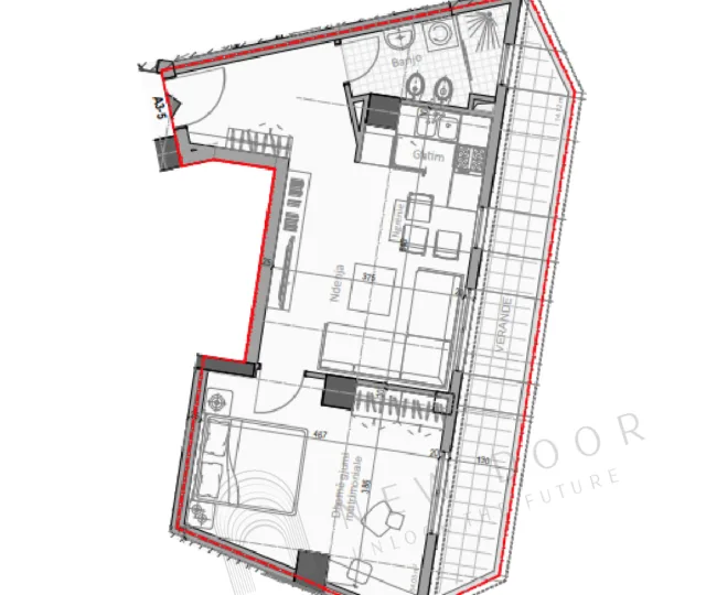– Sipërfaqja e brendshme e apartamentit: 54.1 m²