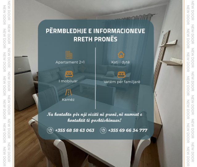 📍 Apartament 2+1 me qira në Kamëz, Tiranë.