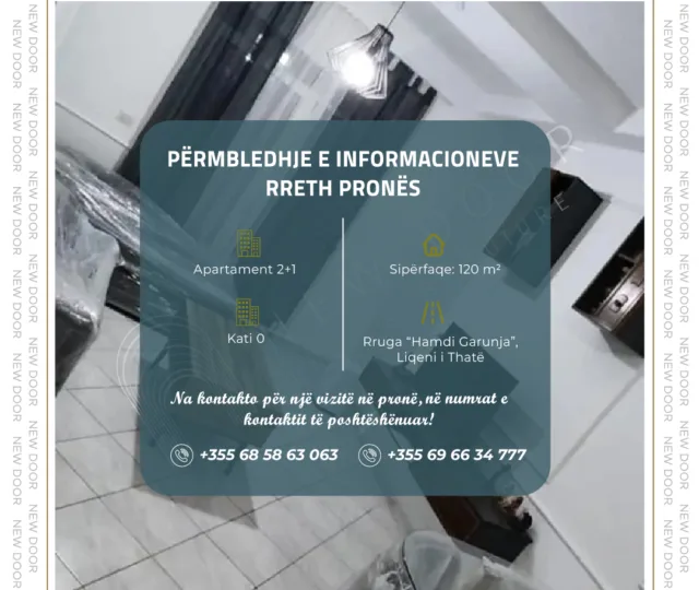 Apartament 2+1 në shitje, në rrugën “Hamdi Garunja”, buzë Liqenit të Thatë, Tiranë.