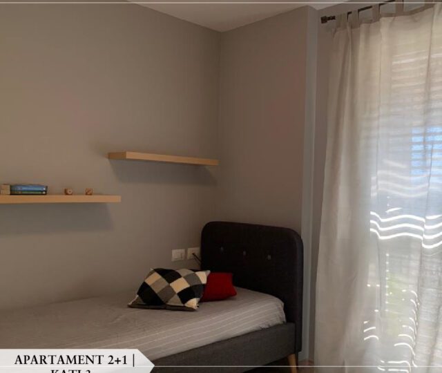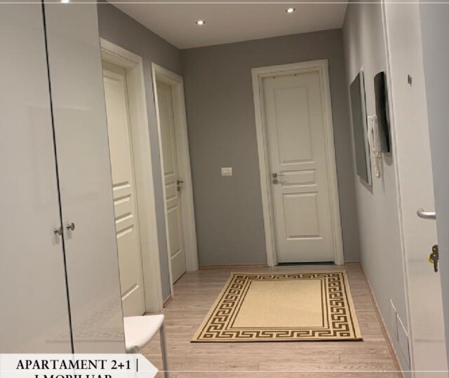 🏢 Apartamenti është i mobiluar totalisht dhe ndodhet në katin e tretë të një pallati.
