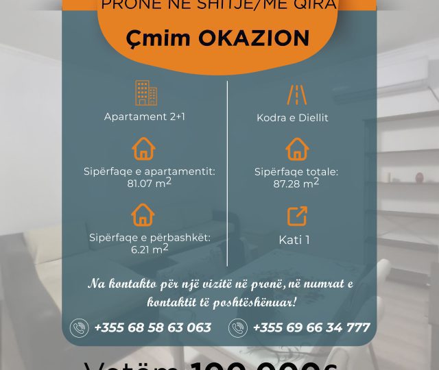 📍 Apartament 2+1 në shitje/me qira me çmim okazion tek Kodra e Diellit, Tiranë.