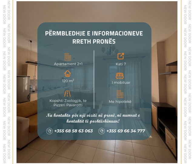 📍 Apartament 2+1 në shitje ose me qera afër Kopshtit Zoologjik, te Pizzeri Pavarotti, Tiranë.