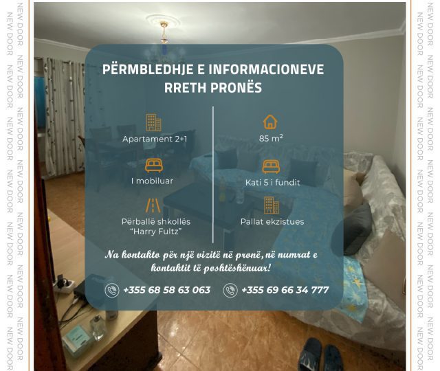 📍 Apartament 2+1 në shitje përballë shkollës “Harry Fultz”, Tiranë.