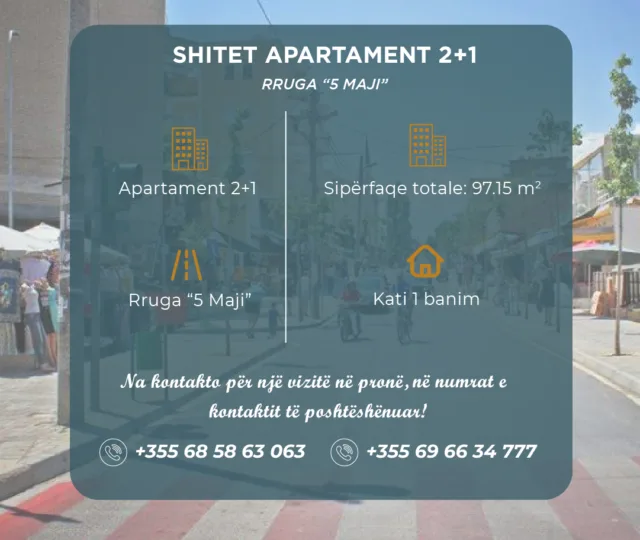 Apartament 2+1 në shitje, në rrugën “5 Maji”, Tiranë.
